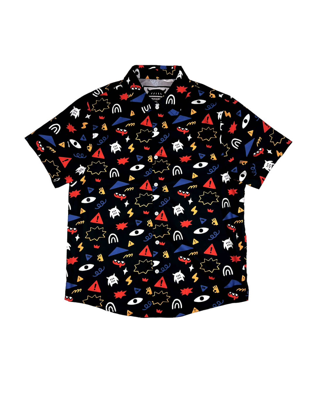 Original SHAPES design by KINWA printed on a 100% polyester UNISEX button-up short sleeve shirt.