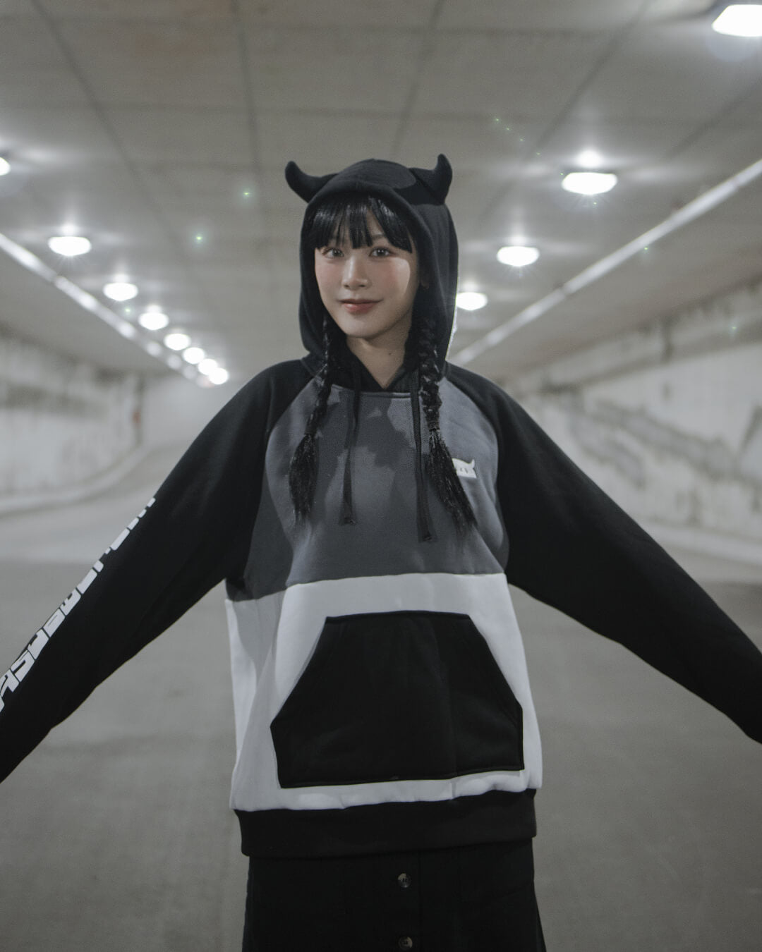 Original Kinwamonster Creature LOGO 50/50 Cotton Polyester Colorblock Hoodie Sweatshirt with embroidered and silkscreened details! Interior fleece lining!