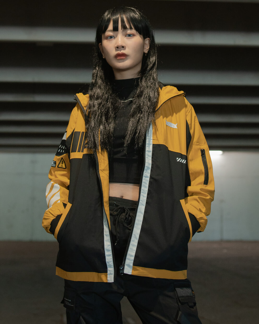 Introducing the original KINWAMONSTER VOL. 3 LOGO design by KINWA, silkscreened on a yellow 100% polyester windbreaker jacket.