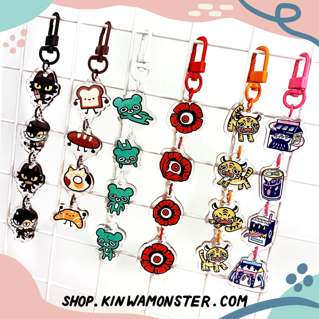 Fun and colorful character mini charm keychains featuring KINWAMONSTER's original characters! Available in 6 different designs!
