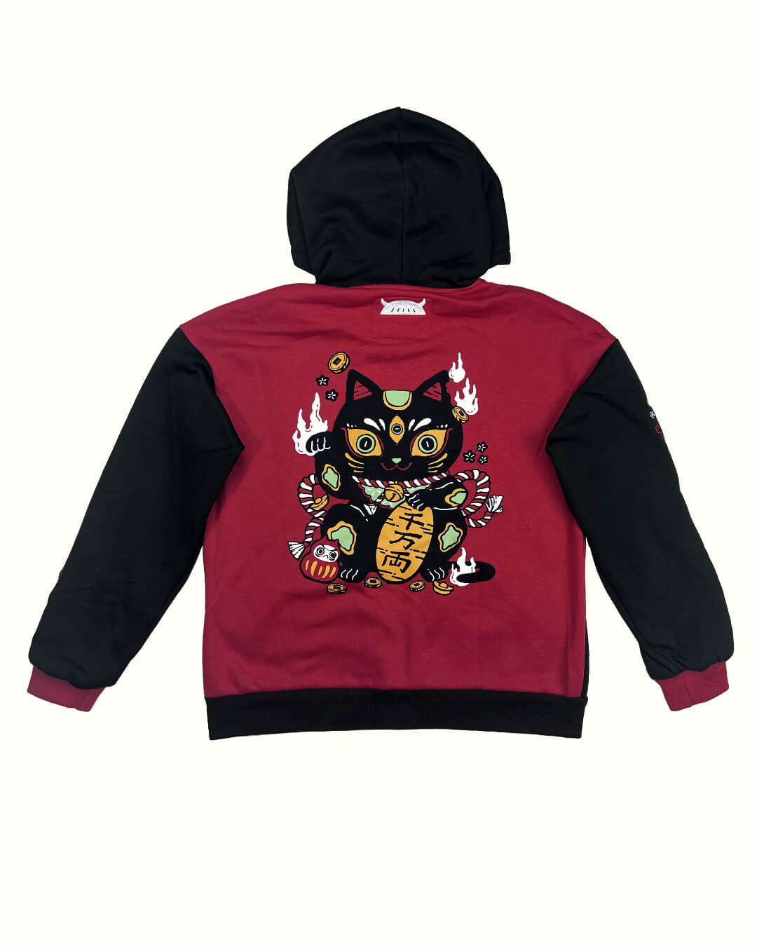 Get lucky with the Original LUCKY CAT 50/50 Cotton Polyester Colorblock Hoodie Jacket!