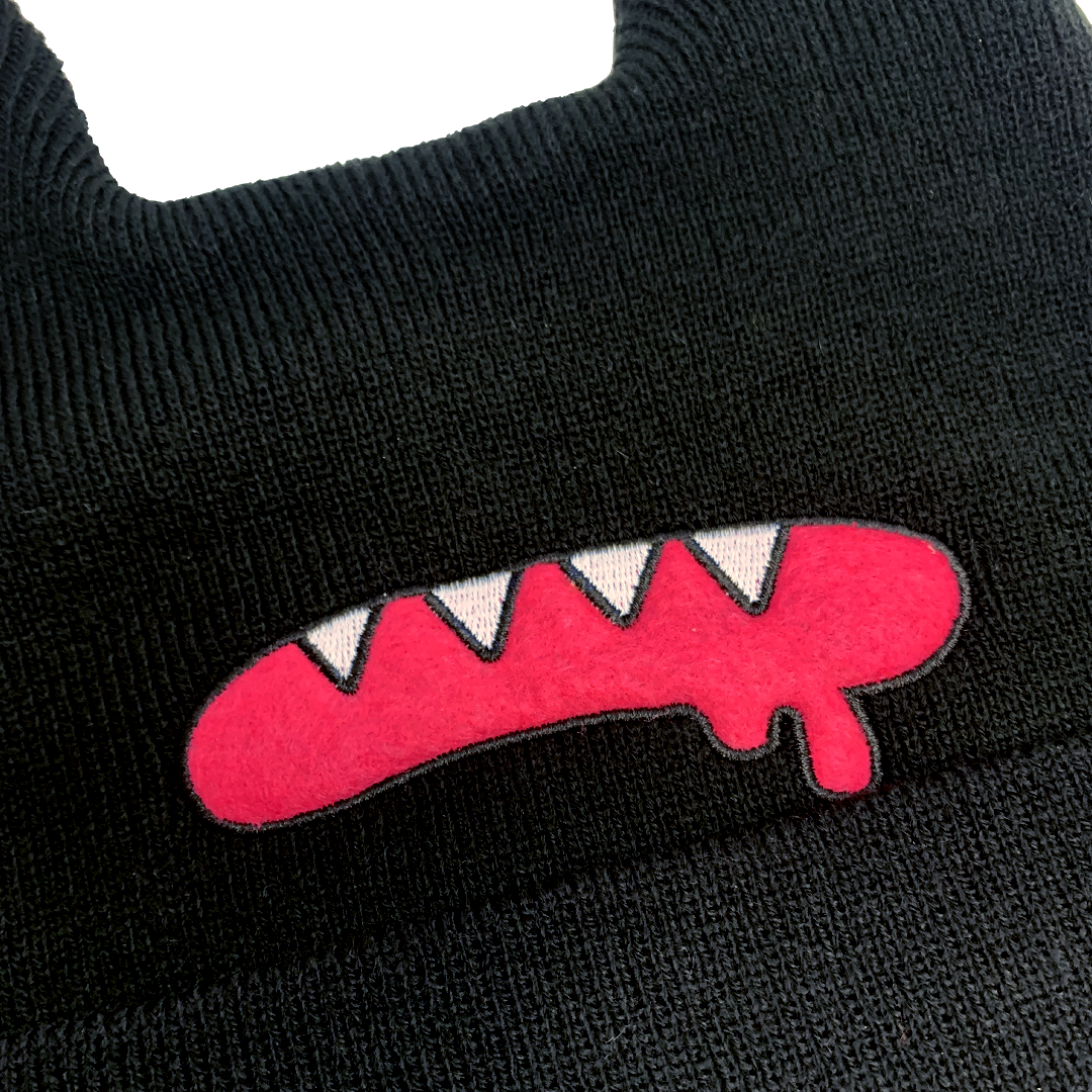 Original Monster Bunny version 2.0 designed by KINWA. Embroidered mouth patch on a black wool beanie. Keep your head warm with this frighteningly cute monster bunny beanie! One size fits most!
