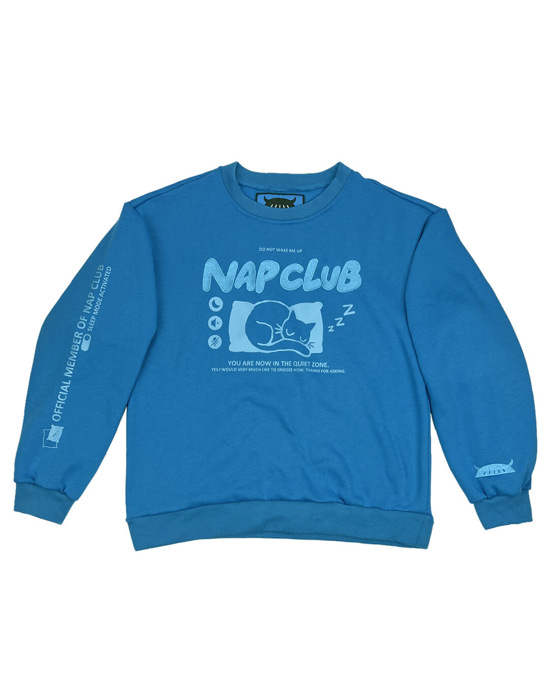 Be an official member of Nap Club with this embroidered 50/50 cotton and polyester blue sweatshirt! Interior Fleece lining to keep you nice and cozy while you drift off to sleep!