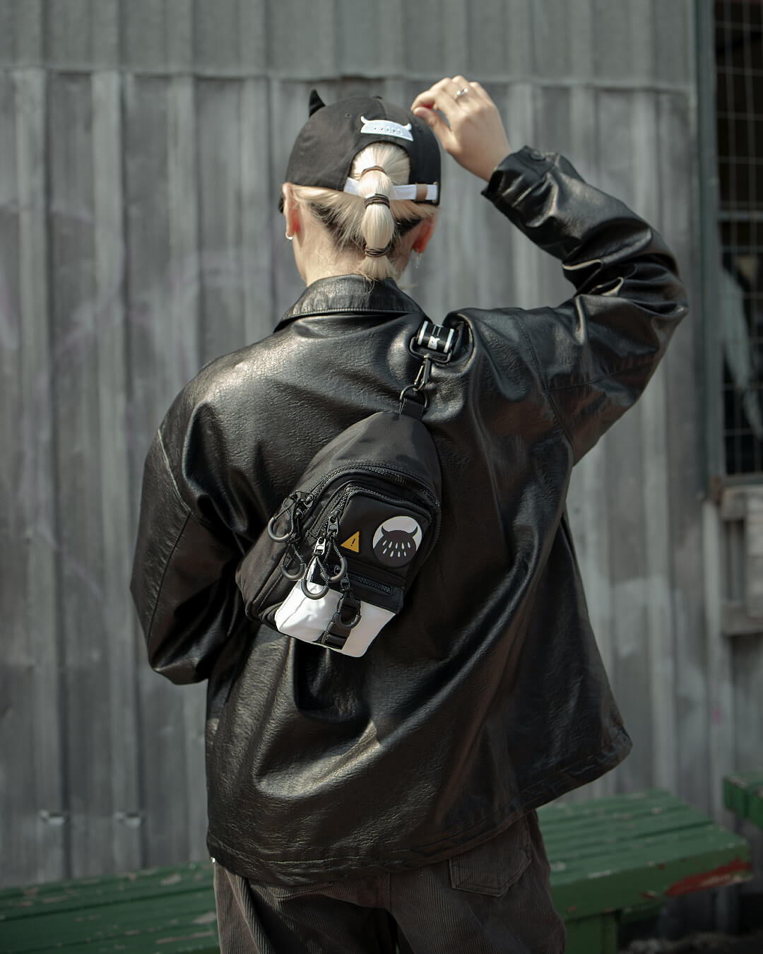 Introducing the LOGO SLING Bag from KINWAMONSTER! Its sleek and compact design makes it the perfect multi-purpose accessory to organize all your belongings and look cool doing it!