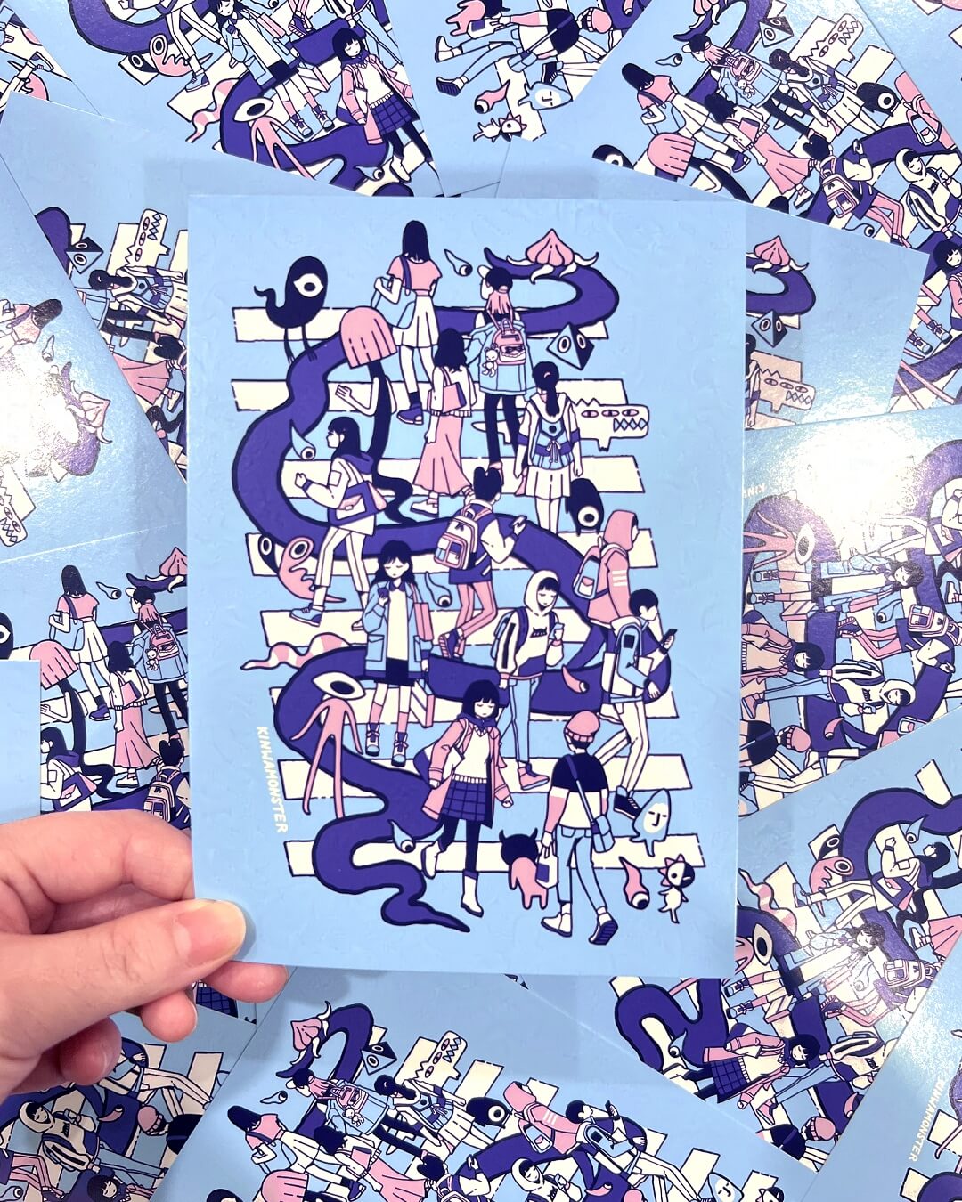 5 x 7 inch square glossy print of pedestrians walking amongst fellow monsters on the crosswalk.